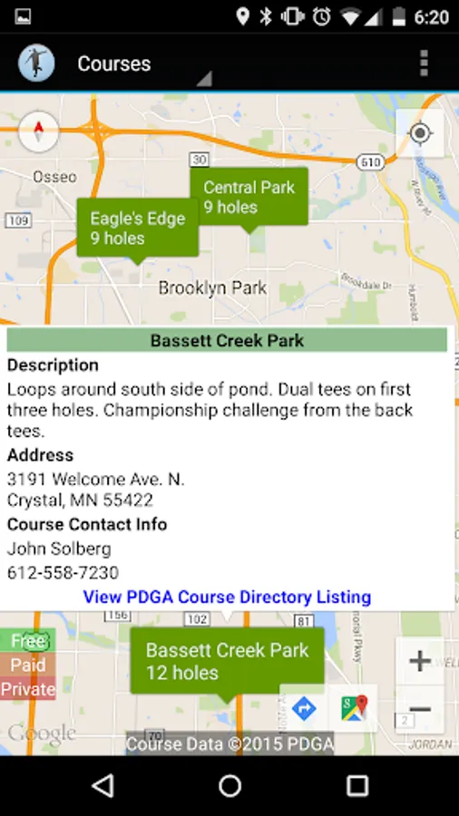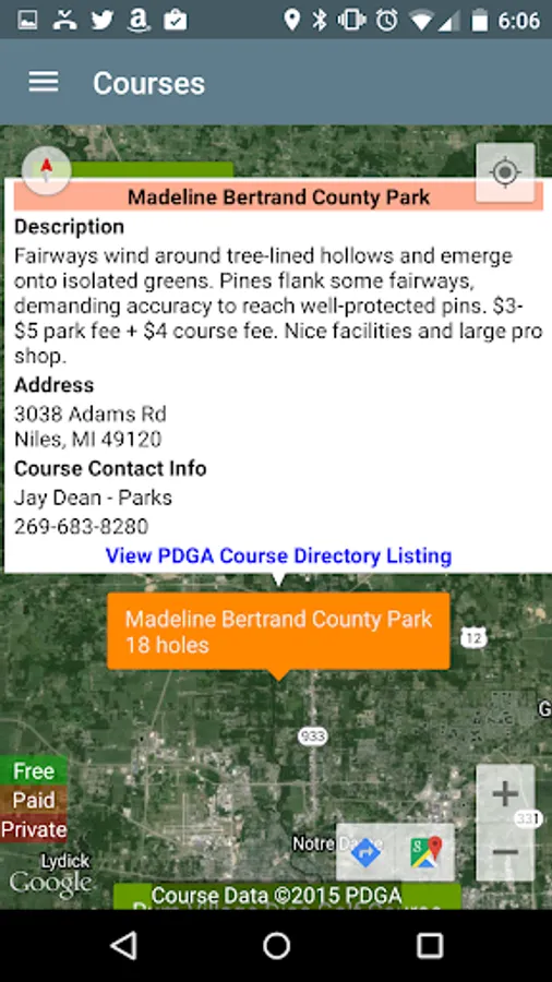 Use the map to view courses visually. Tap the map to load courses around that area.