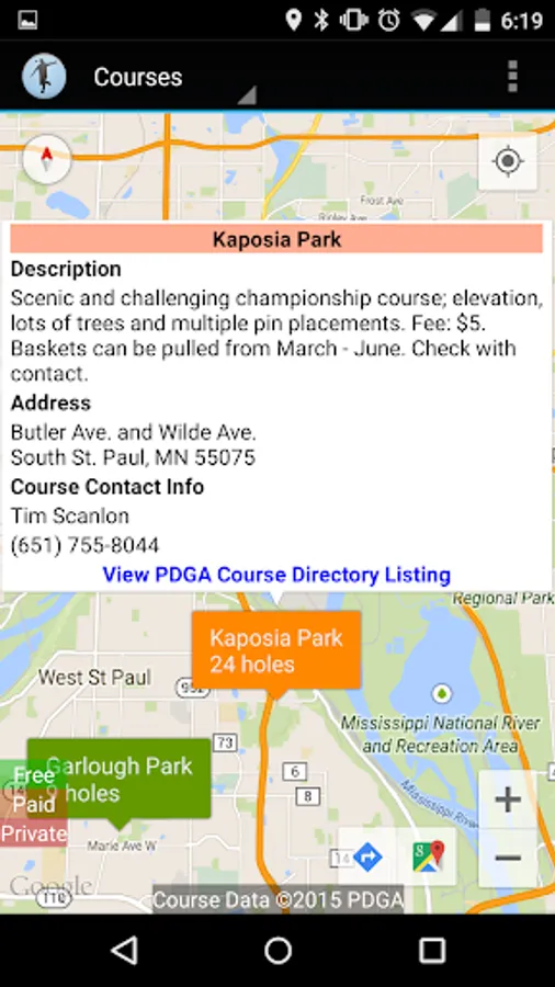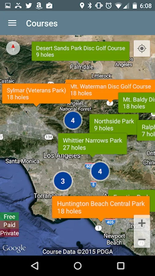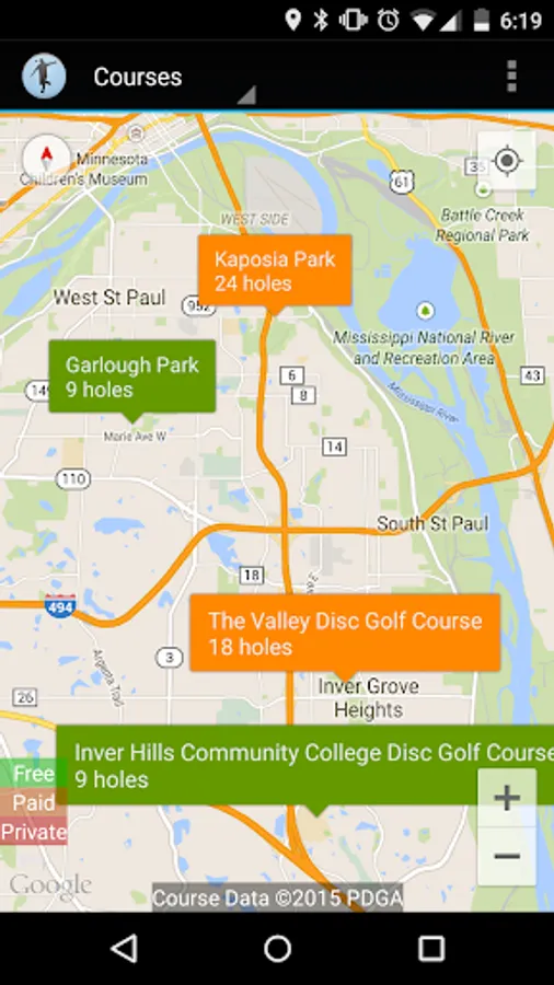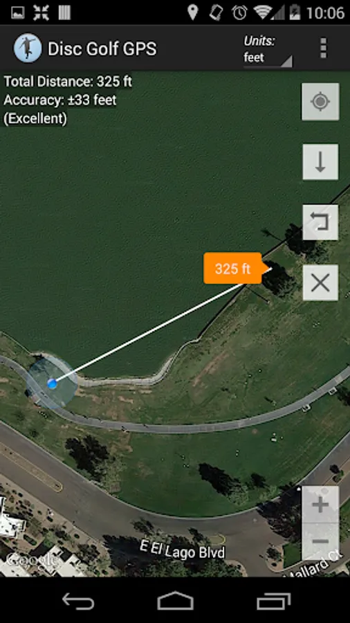 In order to conserve your phone's battery life, this app will turn off the GPS when your phone goes to sleep or you enter a different application. So feel free to use it on the course whenever you need without worrying about your battery dying. Some GPS apps will keep your GPS on even after you leave the app which will drain your battery very quickly. Get DiscBot and stop worrying!