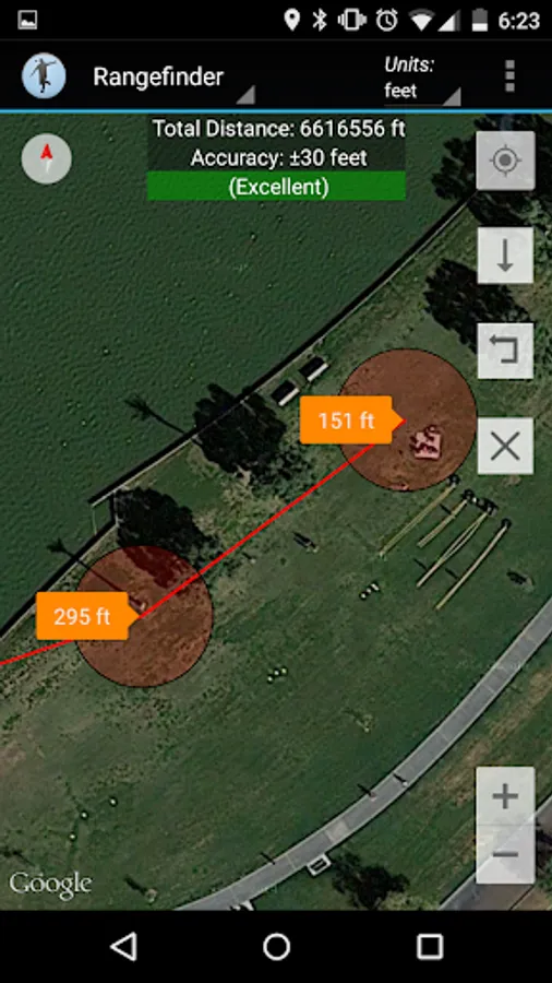 This app is guaranteed to be as accurate as any expensive GPS rangefinder on the market. While using the app, look at the accuracy indicator to see how accurate your GPS signal is. It may take a few moments to find a signal when opening or re-entering the app. Make sure you're in an open outdoor area for best results. The distances measurements are precisely calculated taking into account the curvature of the earth.