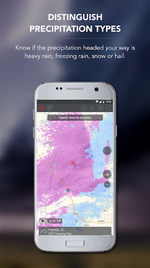 • Cloud-to-ground lightning shows you the precise location of lightning strikes in your area (provided by Earth Networks).
