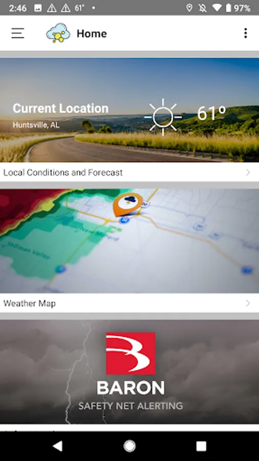 - Integrated SAF-T-Net® weather alerts with Baron Tornado Index (BTI) rankings for up to sixteen locations, including your current location