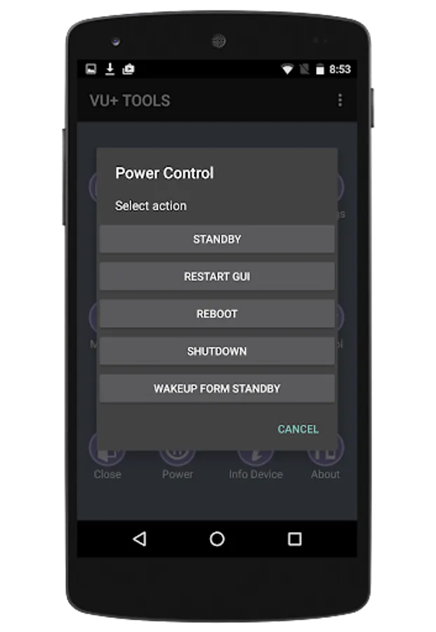 VU+ TOOLS is an Android application designed to allow you to control and manage your VUplus receivers such as VU+ SOLO or VU+ DUO , either from the same network.