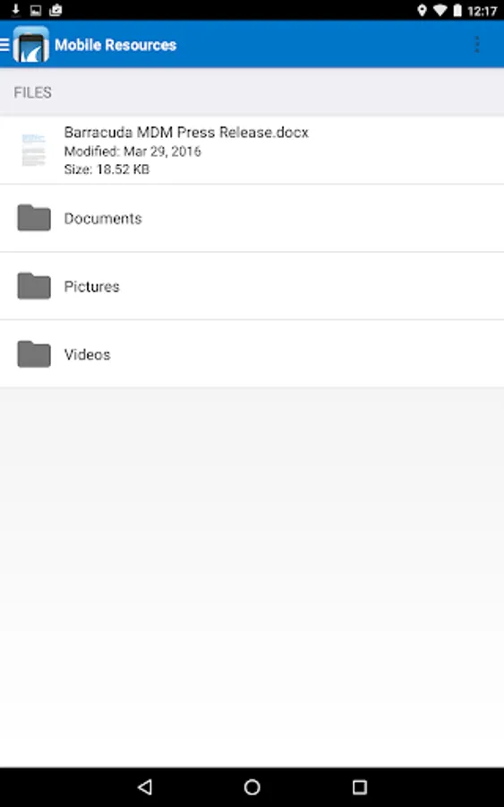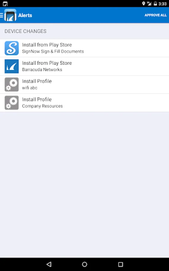 The Barracuda Mobile Companion works with the Barracuda Mobile Device Manager and allows organizations to centrally manage Android devices. The agent is used to enroll devices with the cloud-based Barracuda Mobile Device Manager. Once enrolled, the devices can be centrally configured with security settings and restrictions, remotely monitored and tracked if allowed as well as locked or wiped in case of theft or loss.