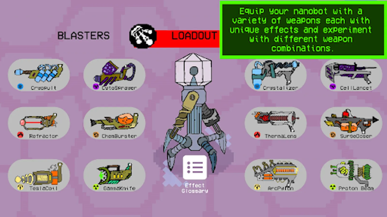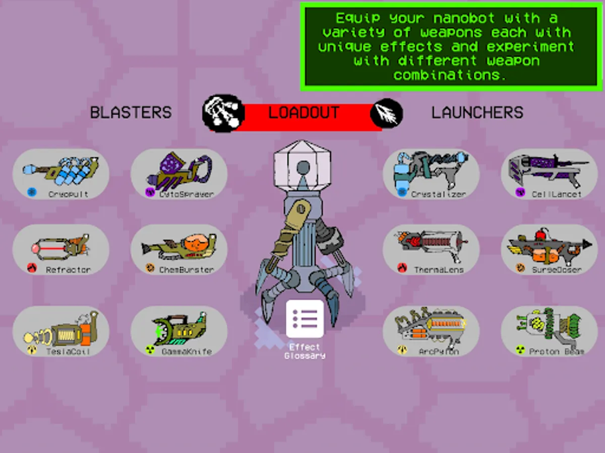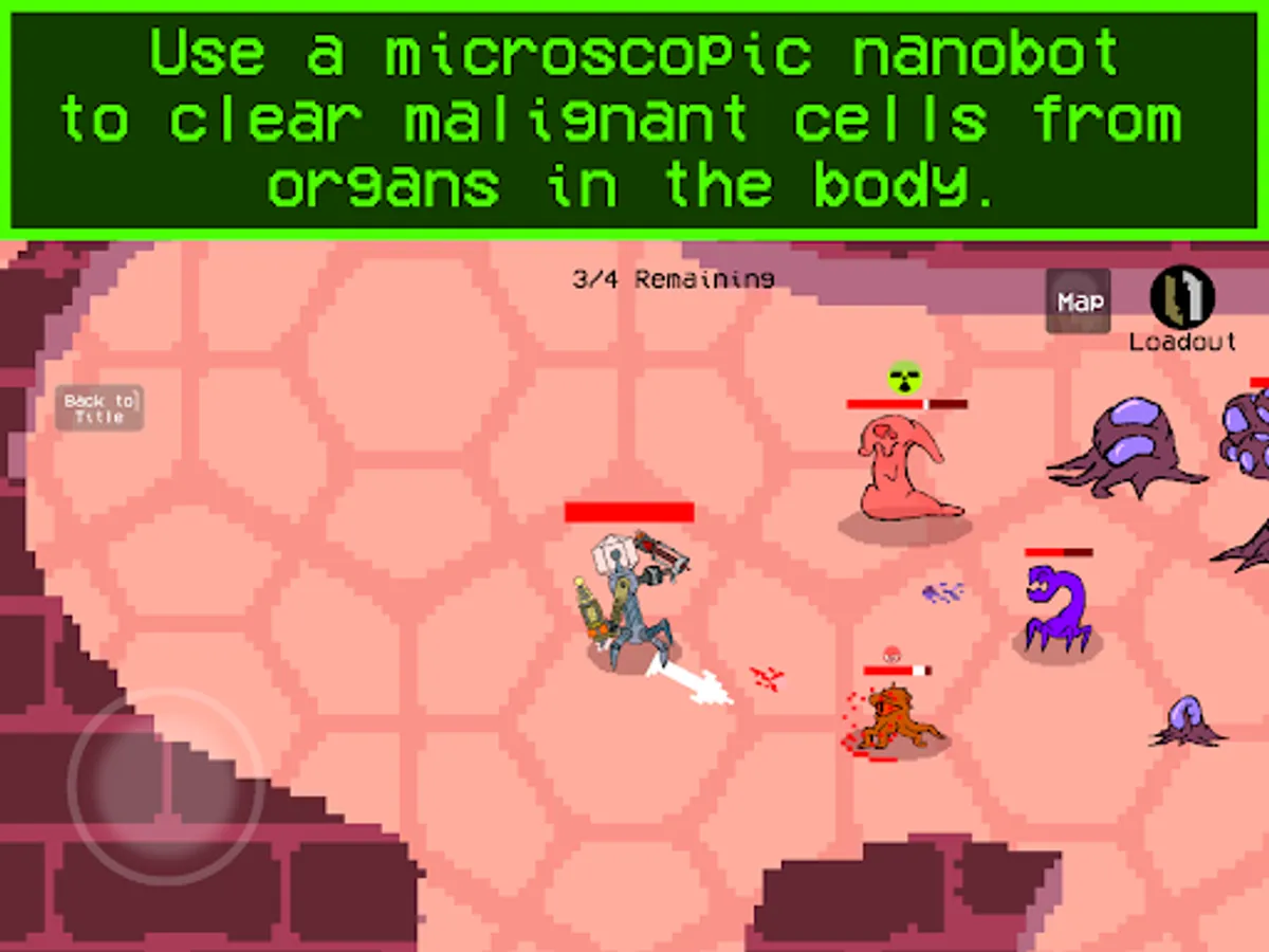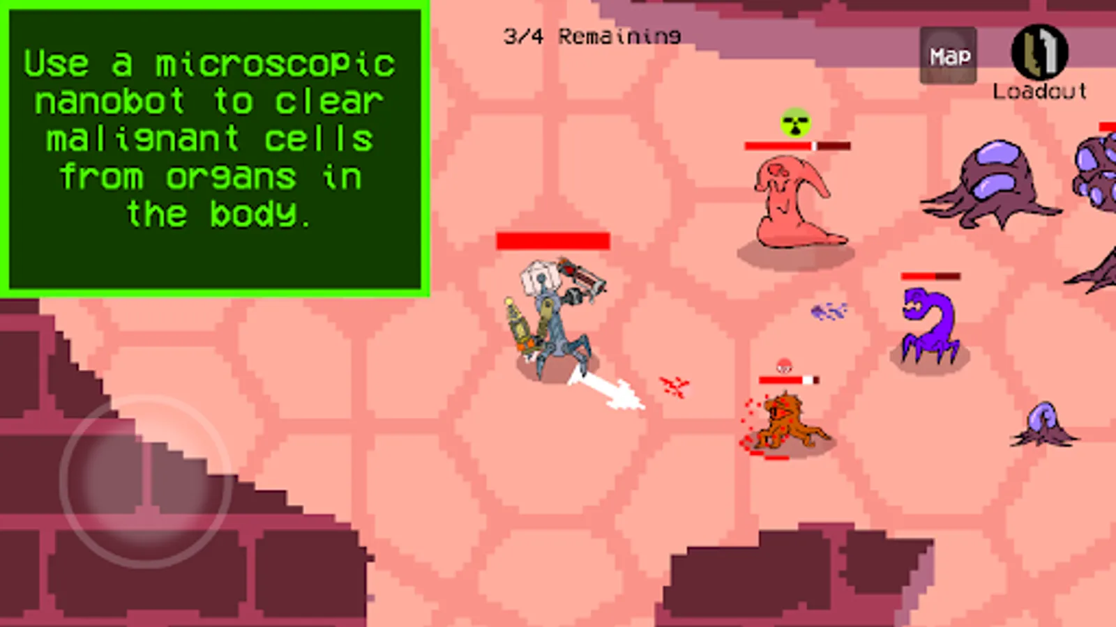 Play as a microscopic nanobot fighting back against malignant cells throughout the body. Each level is a different organ to explore. Equip your nanobot with a variety of weapons each with unique effects and experiment with different weapon combinations.