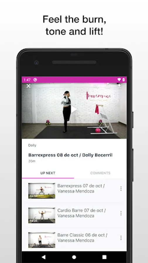 Barrexercise is the best barre app to exercise at home. Feel the burn, tone and lift!