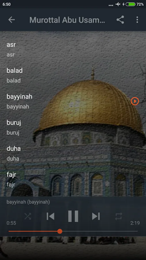 Murottal Abu Usamah Juz 30 Offline Mp3: Audio chanting verses of the beautiful Al Quran. By installing this one application you can listen to a collection of murottal Al Qur'an which is very beautiful from the cleric Abu Usamah complete juz 30 mp3 offline. This Murottal Al Quran Abu Usamah Juz 30 Offline Mp3 App can be played anytime anywhere without having to be connected to the internet network.