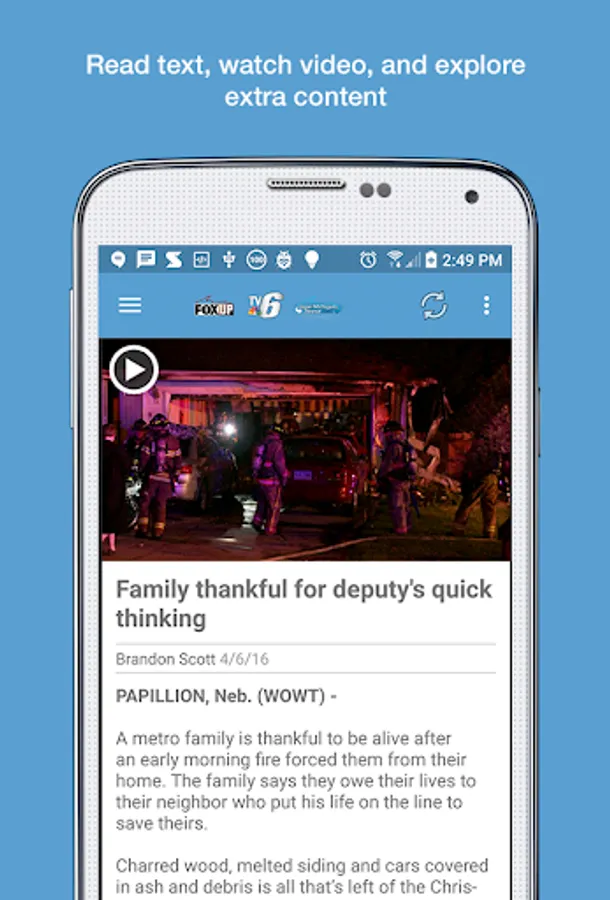 The TV6 & FOX UP News app is your way to stay on top of local news and weather when you're on the go. From breaking news in your community to severe weather alerts before a storm strikes, it's everything you need to know right in your phone.