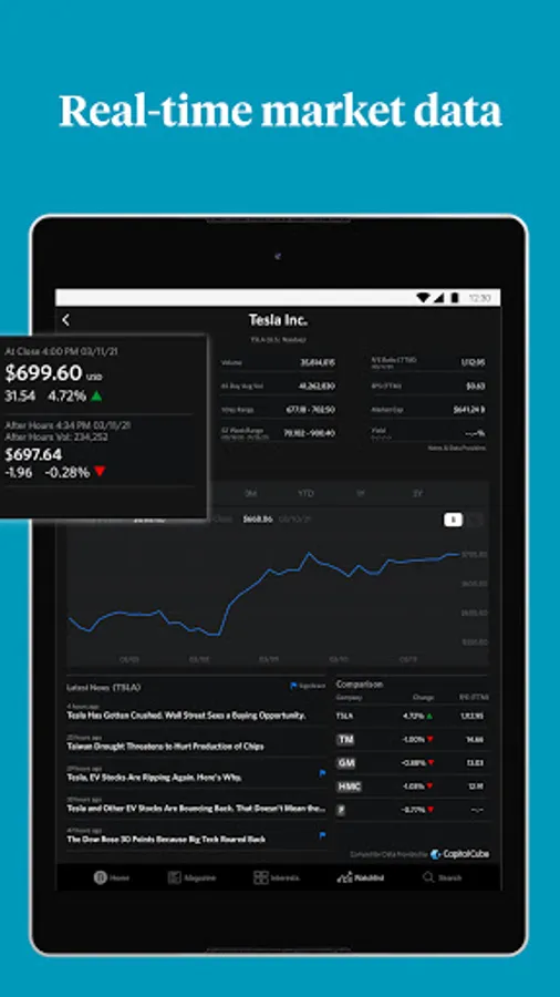 * Access to real-time stock quotes within articles—plus, interactive charts and key metrics to help you identify the next investment opportunity for portfolio.