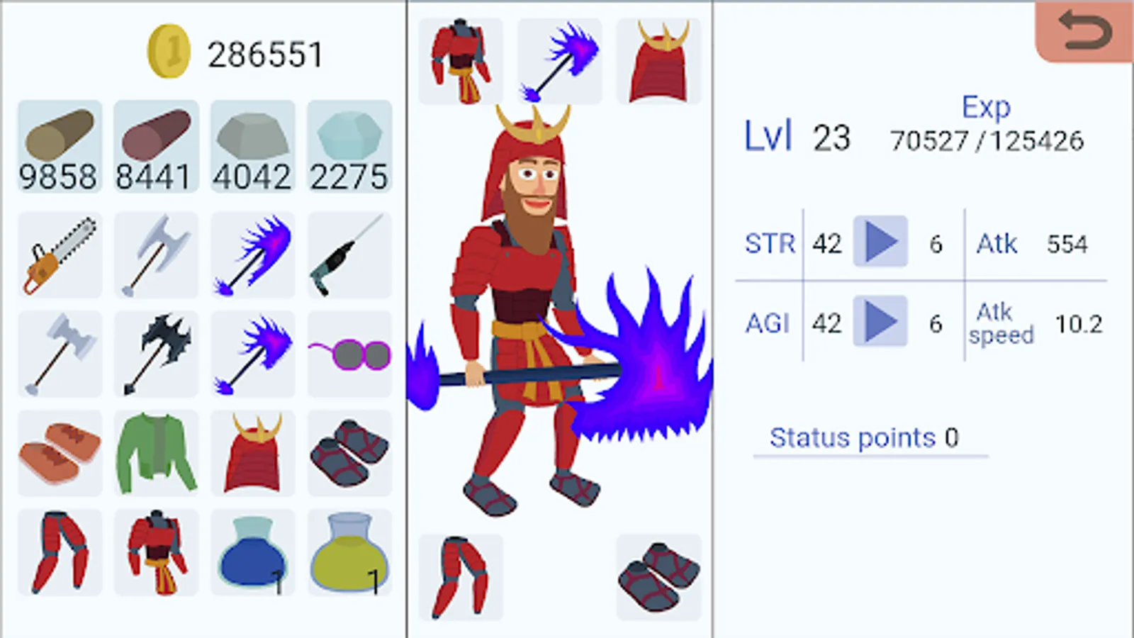 Choose from a variety of costumes, like a ninja or samurai, to boost your stats even further. And don't forget to drink potions to boost your strength and speed.