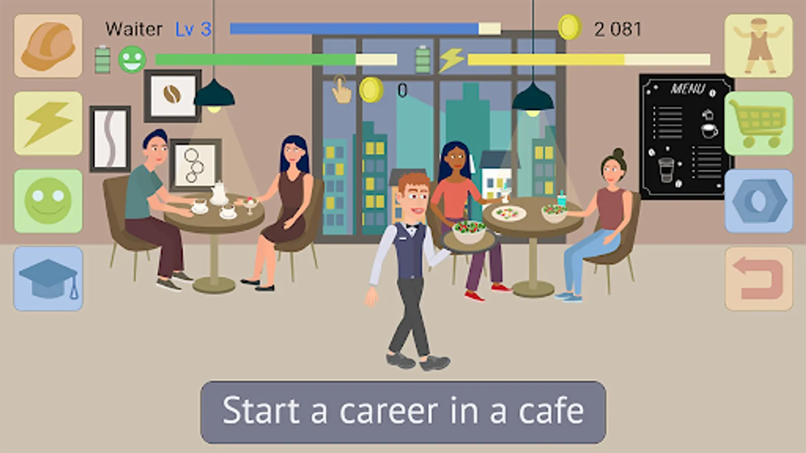In this unique indie life simulation game, you can explore various careers in cafes and factories, unwind in luxurious or budget-friendly apartments, and have fun in different exciting places. Hone your skills with new jobs, advance to the top of your chosen profession, and reach new heights of success.