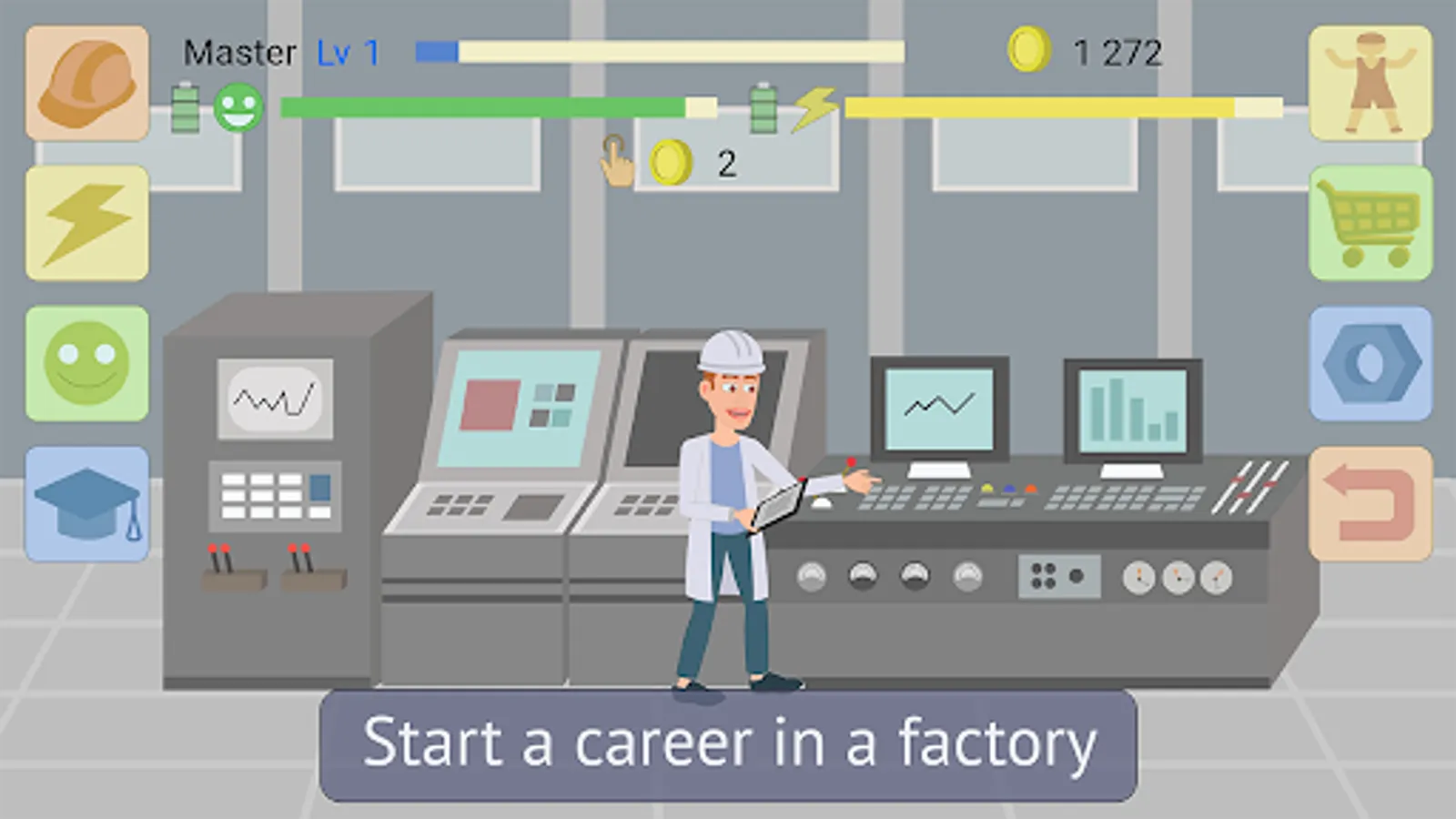 - Climb the ranks in a factory, from a helper to a factory manager.