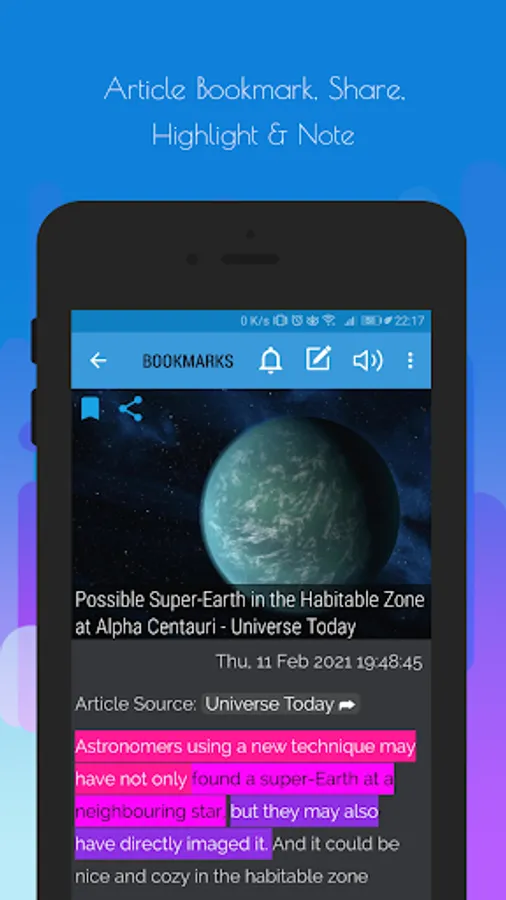 ✔ highlights and notes for bookmarked articles,