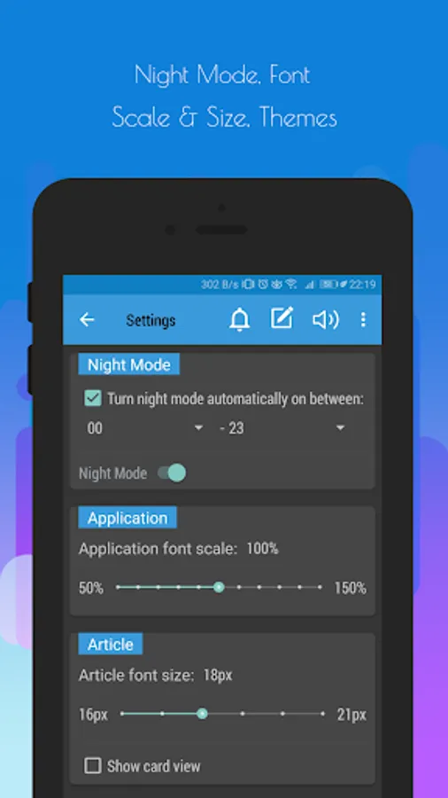 ✔ night mode option (Settings ⇒ Night Mode),