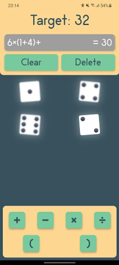 Dice Target is a puzzle game where you get a roll of random dices and a target number to create. Your goal is to get to the target number by doing simple math operations (plus, minus, multiply and divide) on the dices.