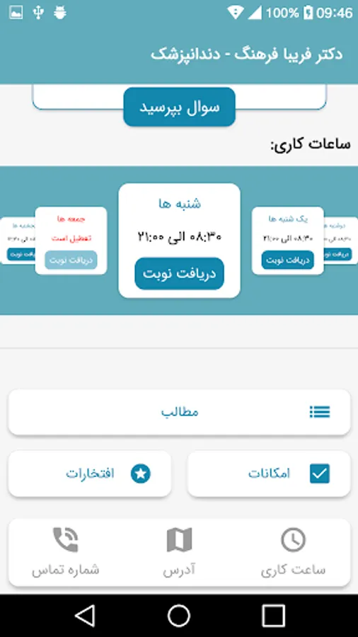 دکتر فریبا فرهنگ - دندانپزشک Screenshots