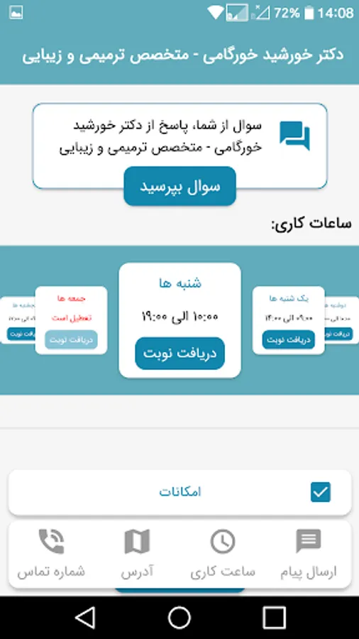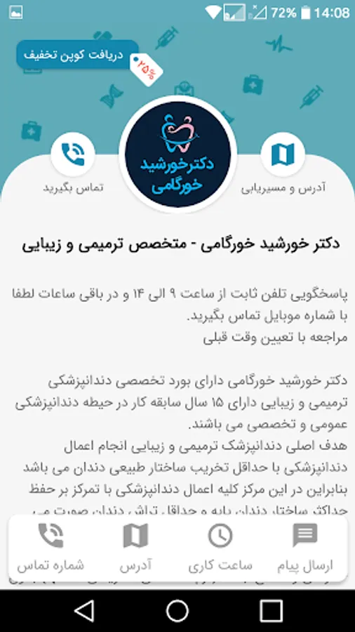 در اين مركز مشاوره زيبايی و خدمات اورژانس دندانپزشكی با هماهنگی قبلی صورت می گيرد.