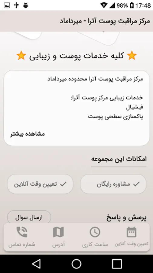 Atra Skin Care Center, Mirdamad area
