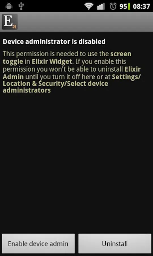 It is an add-on for Elixir 2 and contains features which require device administrator permission.