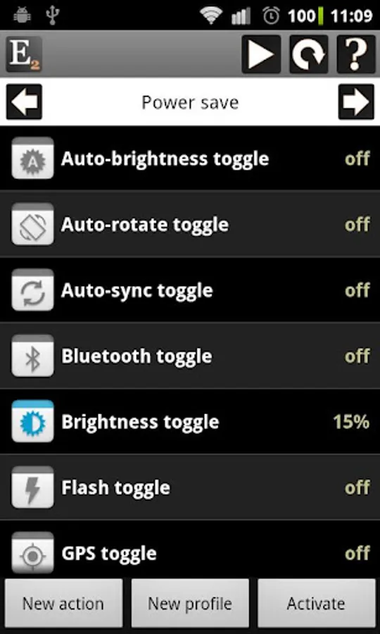 - change settings (brightness, screen timeout, ...), do actions (mount/unmount sd, clear cache, start bluetooth discovery, ...), turn things on/off (apn, wifi, bluetooth, auto-brightness, rotation, ...)