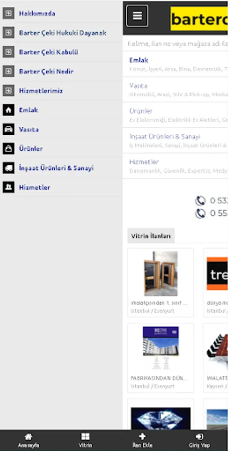 AS A PAYMENT METHOD, WE PROVIDE TRADED PROPERTIES AND PRODUCTS, ALSO THE PRODUCTS REQUESTED WITH BARTER CHECK, THESE REAL ESTATE AND MARINE VEHICLES AND ORGANIZE THE PROCESSES OF PURCHASE AND SALE.