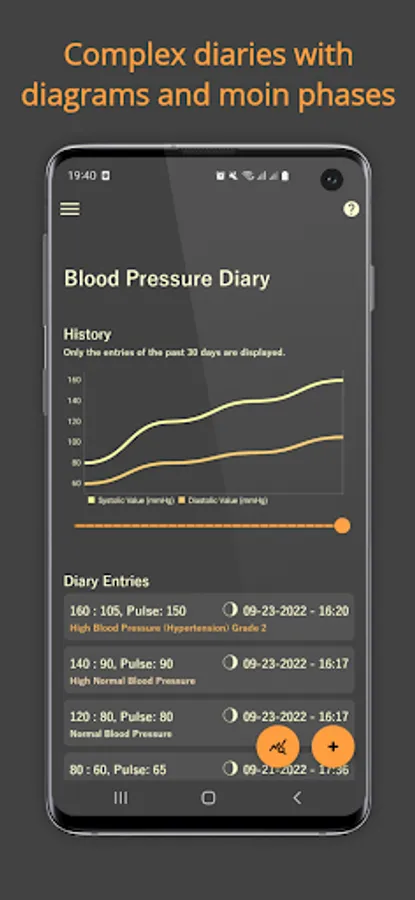 If you hold your finger on a diary entry, you can display all entries of all diaries that were entered immediately before. This facilitates the analysis of your data and lets you see correlations.
