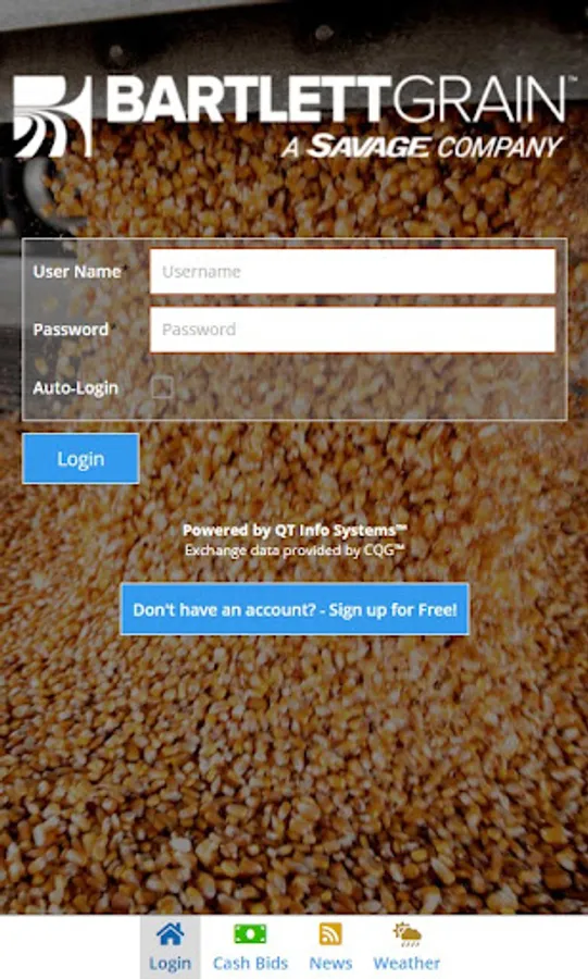 The Bartlett Grain Mobile App is a comprehensive, online, futures & commodities quote and charting platform for you mobile device. Get "FREE" delayed futures / commodity quotes. Find up-to-the-minute Cash Bids information for all our locations. Interact with your Bartlett account to sign contracts, view tickets, settlements, and more. With a subscription you can get real-time access to the futures / commodity exchanges.