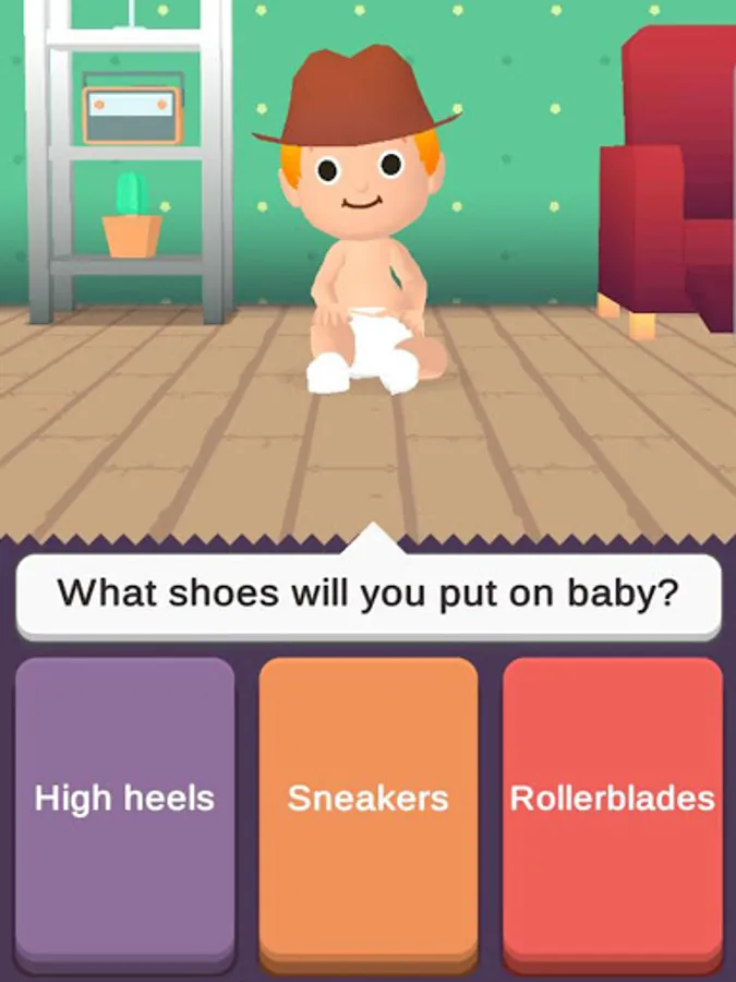 Raise a baby by making the right choice! Being a parent is not easy but this puzzle story game will change your life. Pick from two different options: one is good, one may not be. At the same time, some questions are easy, others are not. In the end, it’s all about answering what’s best. Every choice will lead to upgrades, so choose enough to earn special rewards in the end.