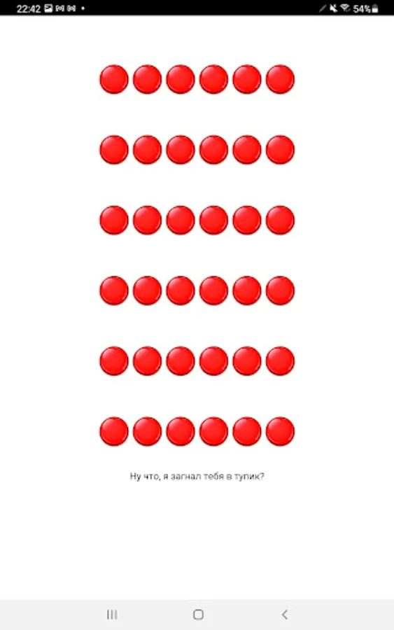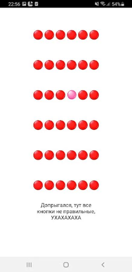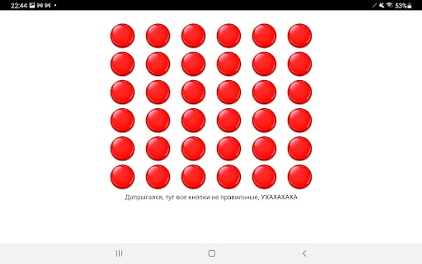Old joke with a red button, but with a new action. Press the button and see what tests they offer you. Is it weak to reach the end? The action is updated periodically.