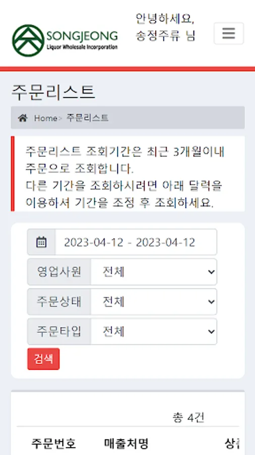 송정주류 주문관리