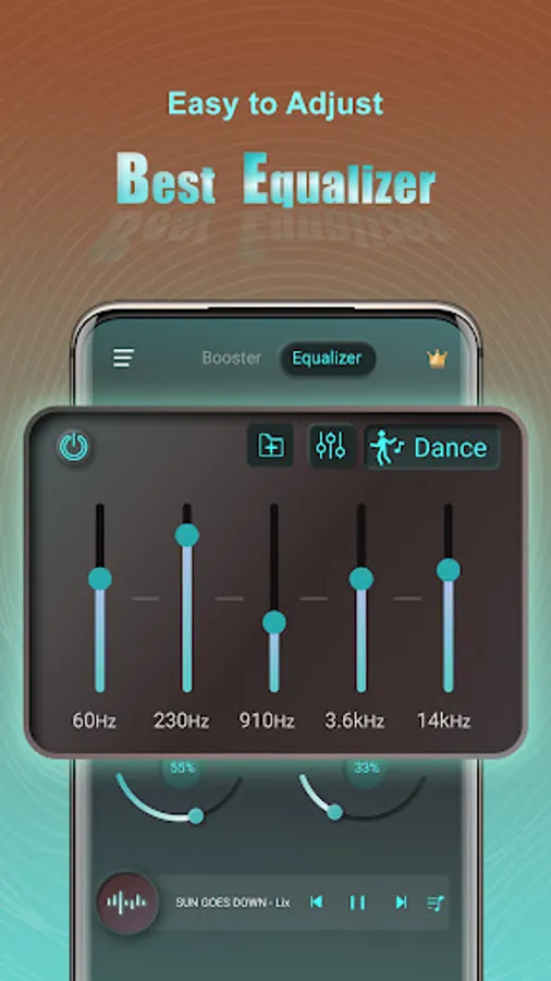 -Manually adjust the volume booster to increase your volume higher than the system default value. You can also manually adjust the bass booster and virtualizer at will.