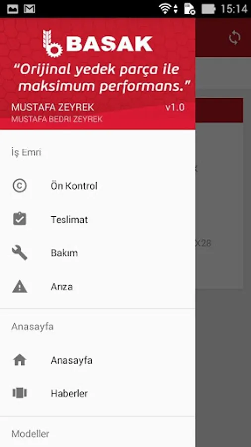 Başak Tractor After Sales Services Application is used by our authorized services.