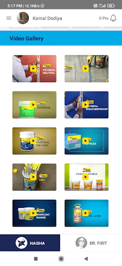 b) Video Gallery: This section includes informative videos highlighting application methodology, areas of application and important checks to keep in mind while applying HAISHA & Dr.Fixit range of products.