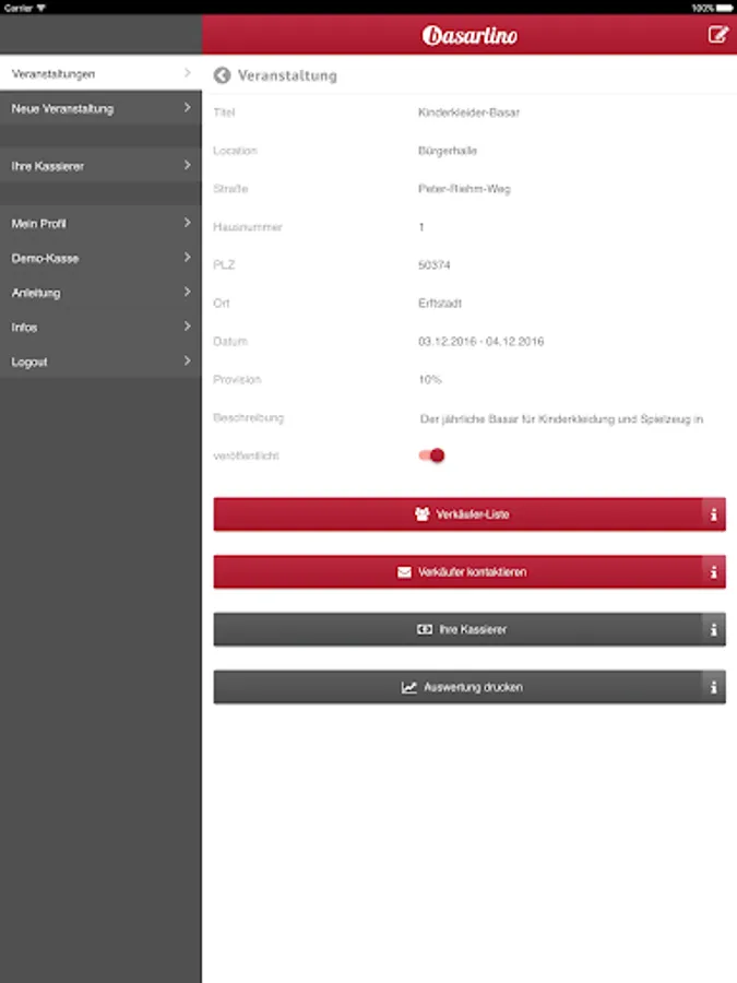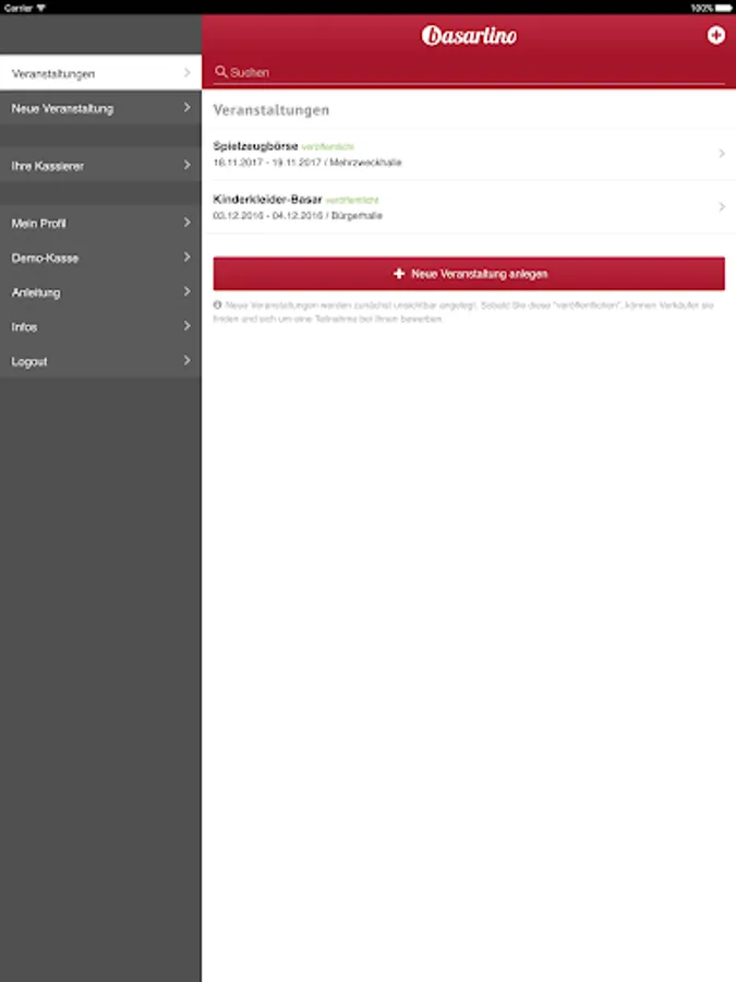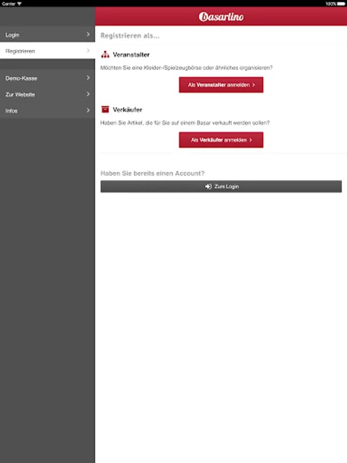 This app offers you mobile access to your basarlino account with all functions for organizers and their cashiers as well as for sellers and their articles.