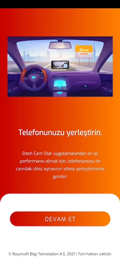 DASH CAM STAR, Başarsoft A.Ş. developed by. The main purpose of this application is to enable the USER to use their mobile device as a vehicle security camera. It is to detect city objects detected in the camera image while recording the video image of the road by the end user while driving.