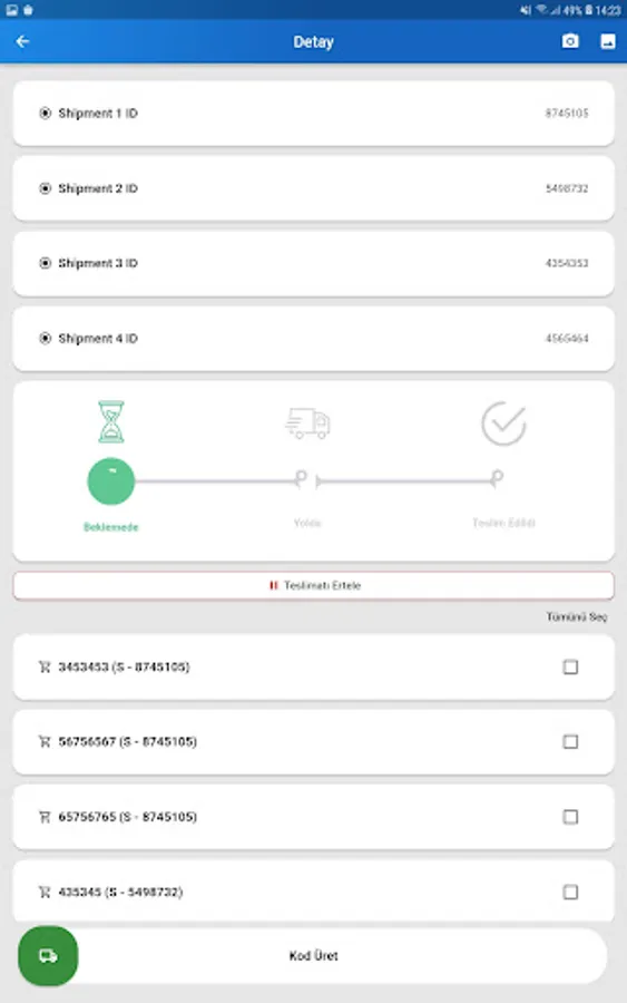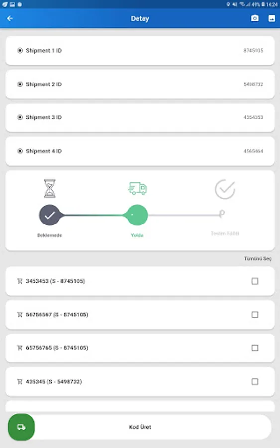 It is an application made for the use of drivers in the Nestle distribution chain. Drivers can see the deliveries assigned to them and the details of the deliveries. It sends the information that the flight has started, the information that the flight has ended, the information that the delivery has been completed and the location information of the device to the center via the application.