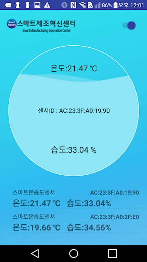 The information on the temperature and humidity sensor beacons deployed in the Smart Manufacturing Innovation Center is an app that can determine in real time from a smartphone app.