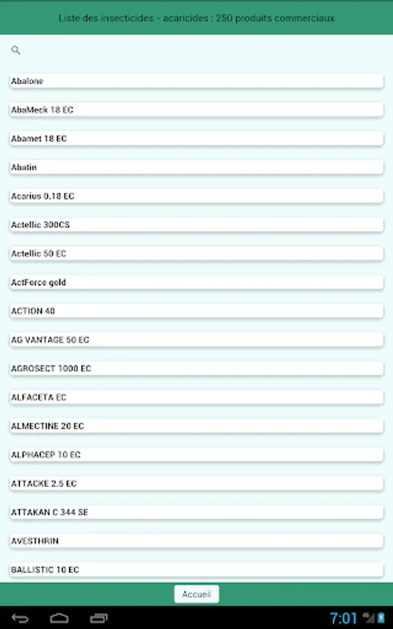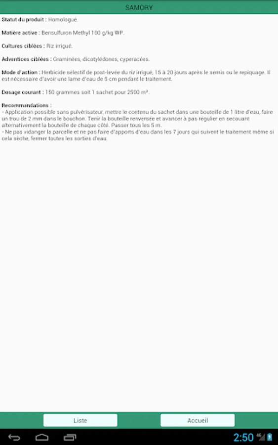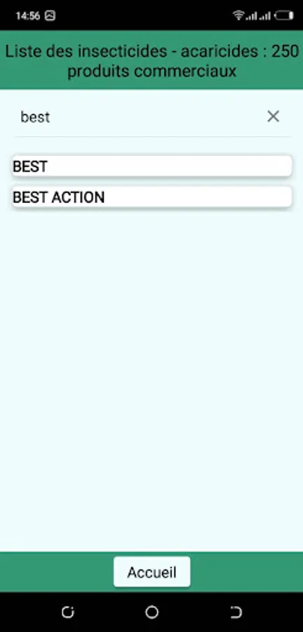 This application presents the phytosanitary products (insecticides and acaricides, herbicides, fungicides) which are on sale in Niger or used by agricultural producers. It was established by the Regional Chambers of Agriculture of Niger, the National Network of Chambers of Agriculture and also producers who are members of WhatsApp groups, who take photos of the products offered to them to find out if they are approved and also how to use them. Only approved products are authorized on Nigerien territory.
