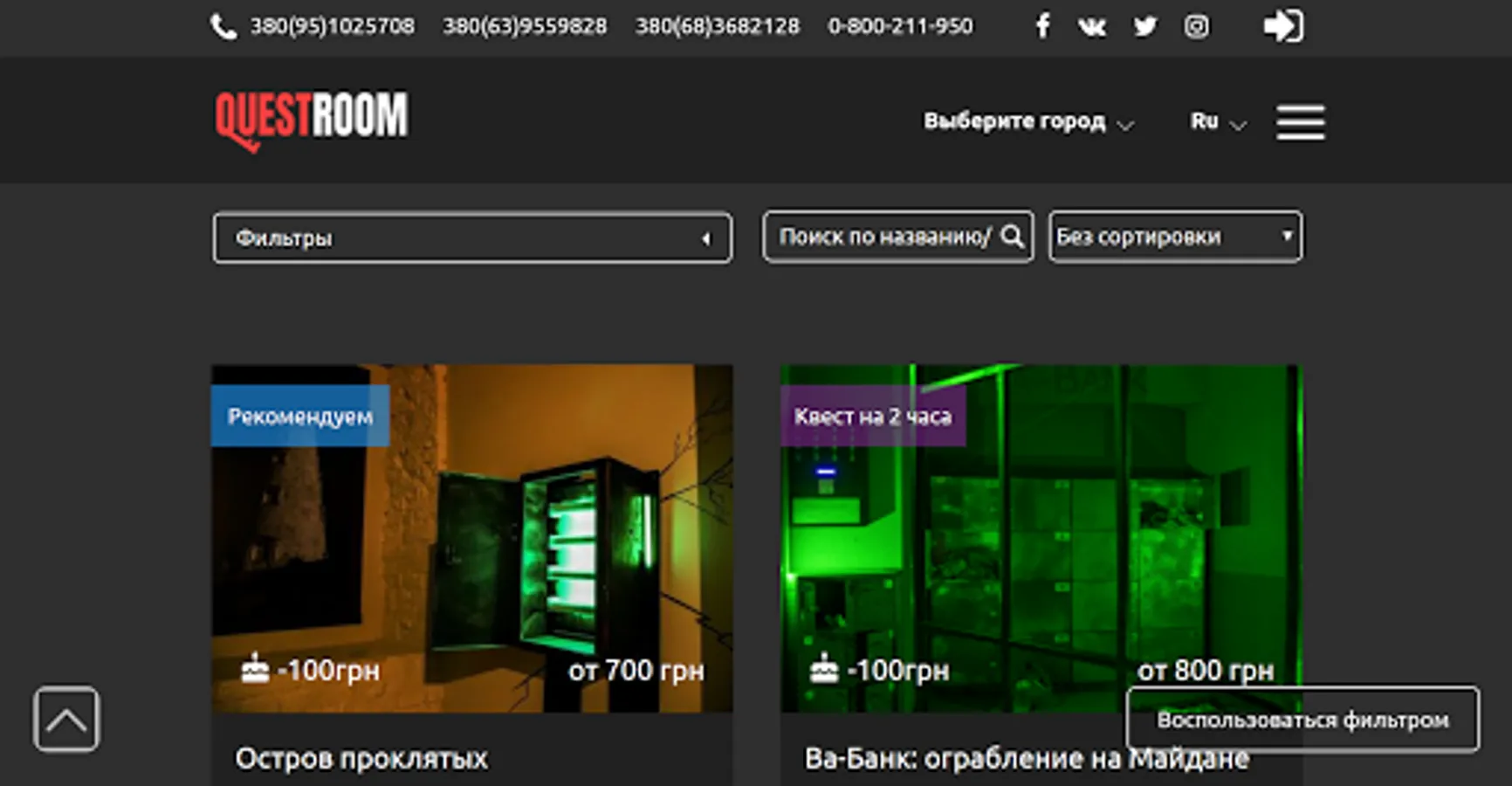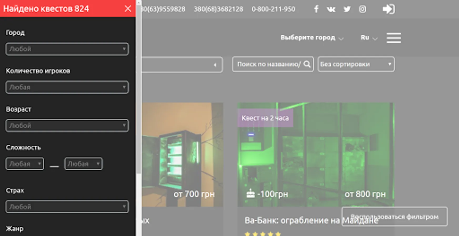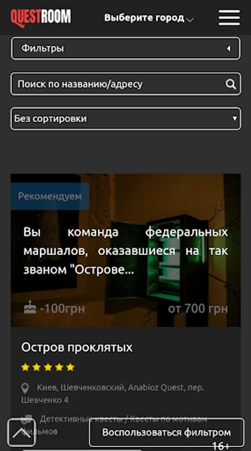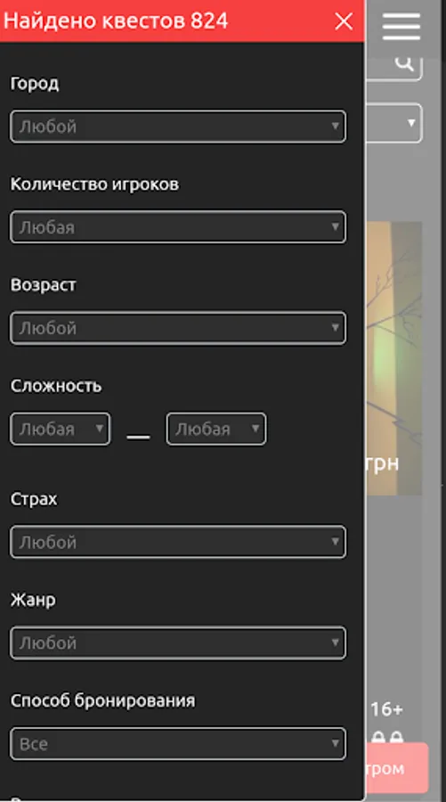 All quests in Ukraine in one place. Discounts, gift certificates, reviews, reviews and online booking. Choose and book a suitable quest using the filter or by phone.
