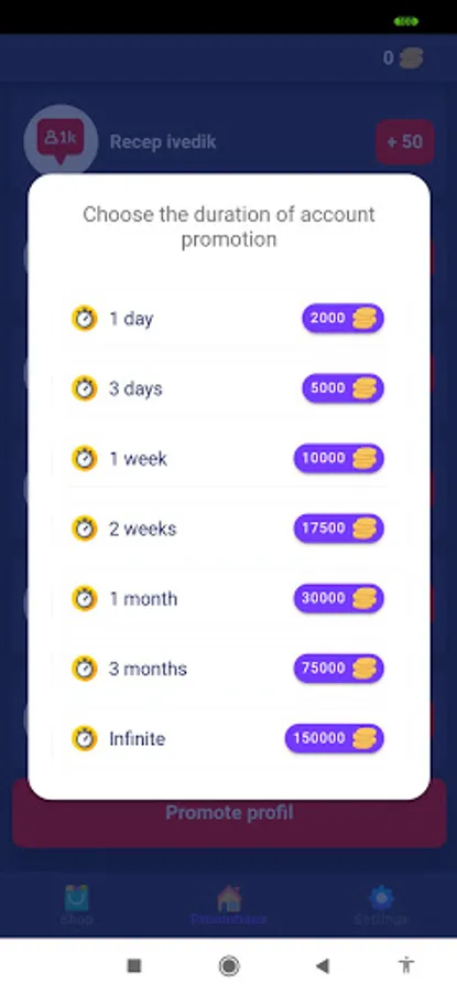 ✅ Get Coins by followings people, watch ad or simply buy coins