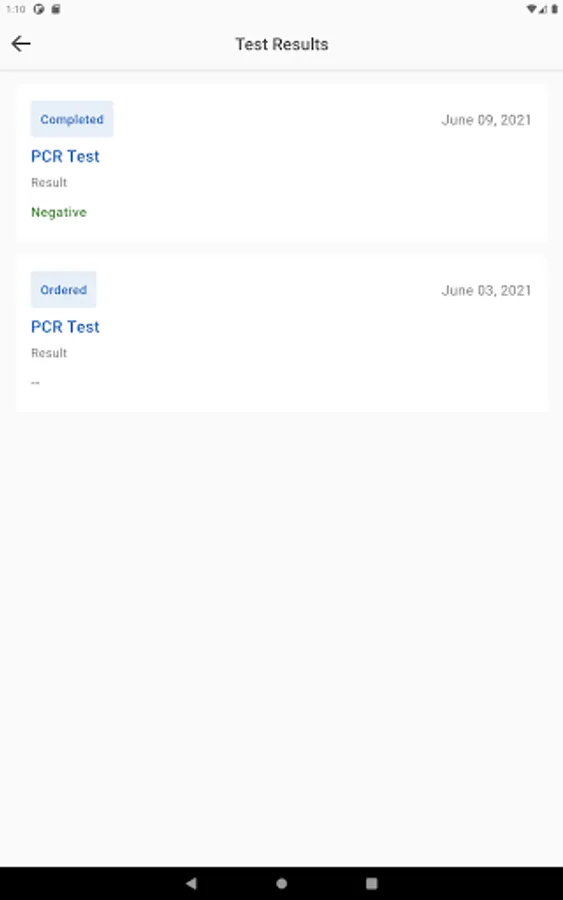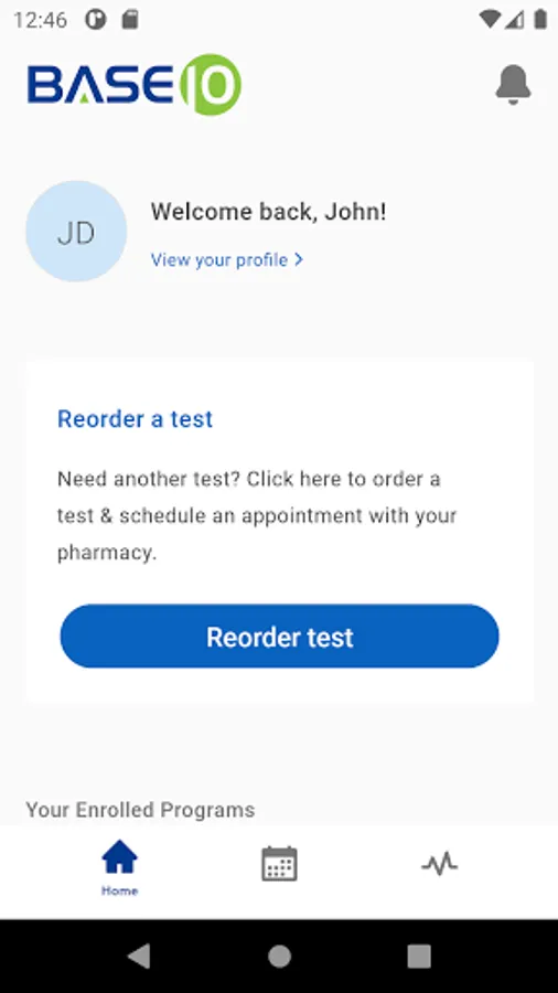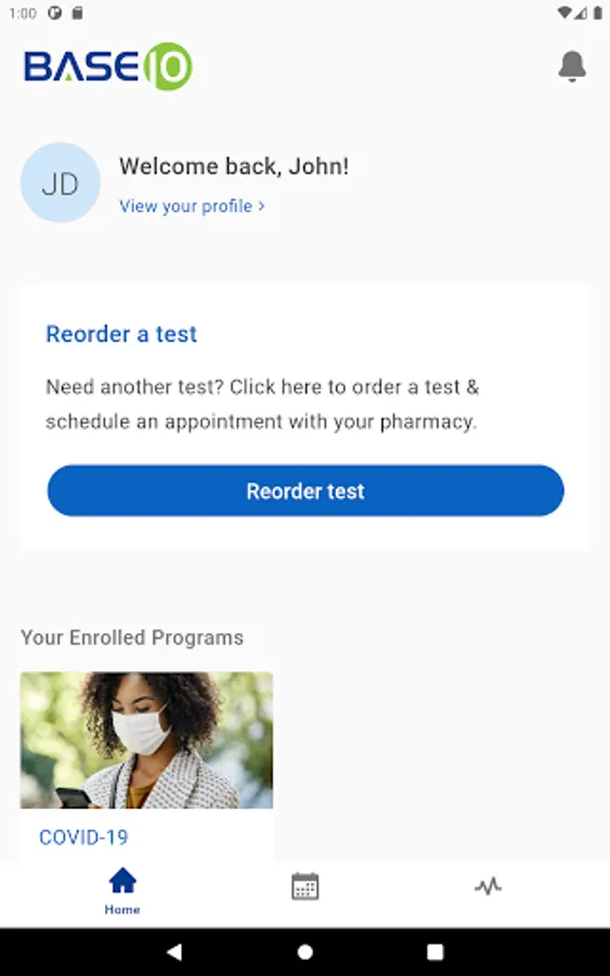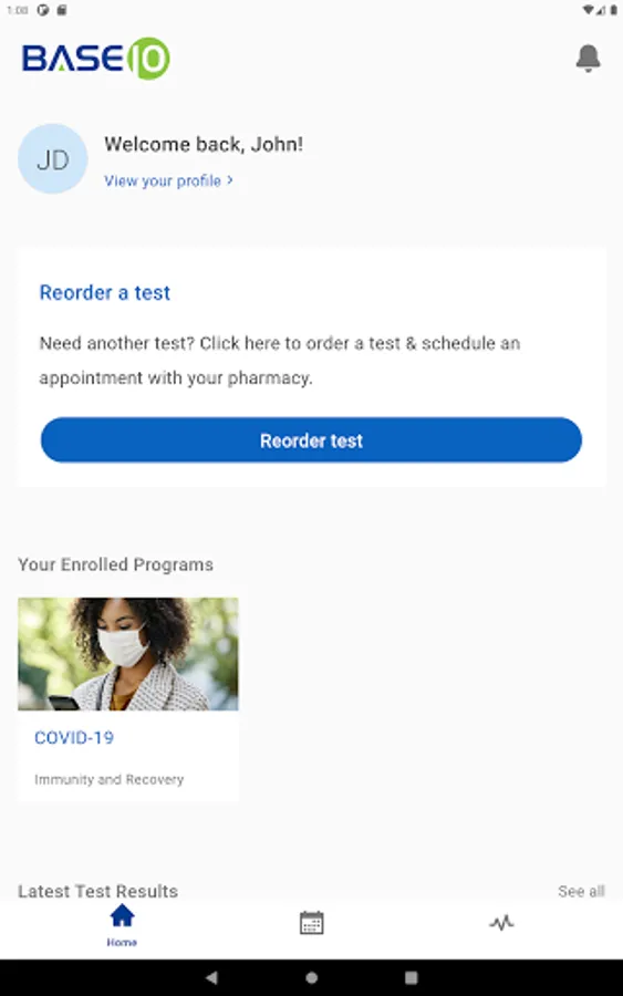 Keep track of infectious disease test results and timeframes directly on your dashboard. Tests can be purchased at your local pharmacy, and results are shown right on the app. Enterprise clients are able to order and re-order tests online.