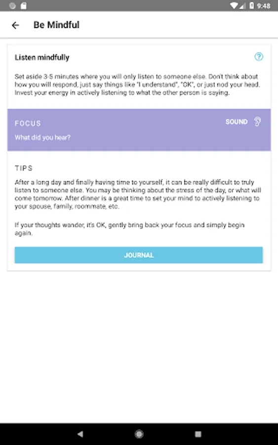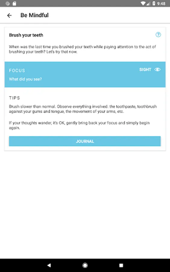Present Sense is a mindful journaling app that helps you experience the joy every moment has to offer! Present Sense guides you through training exercises and gives thoughtful ideas about where and how to bring mindfulness into your daily life, then teaches you the power of journaling about your experiences.