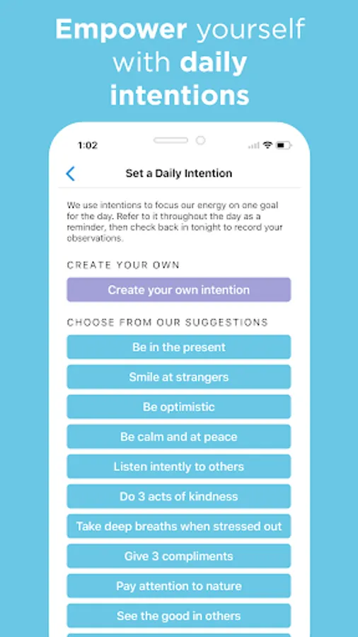 - Reminders and affirmations sent to your phone daily to keep mindfulness at the forefront of your mind!