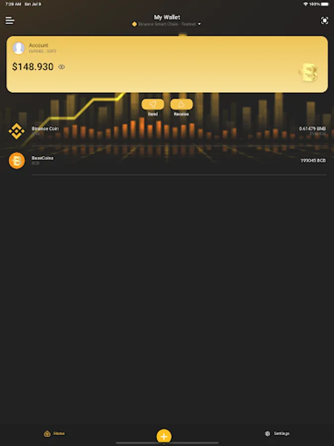 • Use BaseCoins key vault, secure login and digital wallet to manage your digital assets.