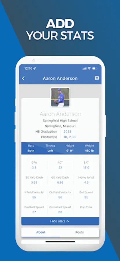 • Sign Up and Build Your Profile - Showcase your stats, playing experience, and highlights. Once your profile is created, your stats can be found by all our coaches, scouts, and recruiters.