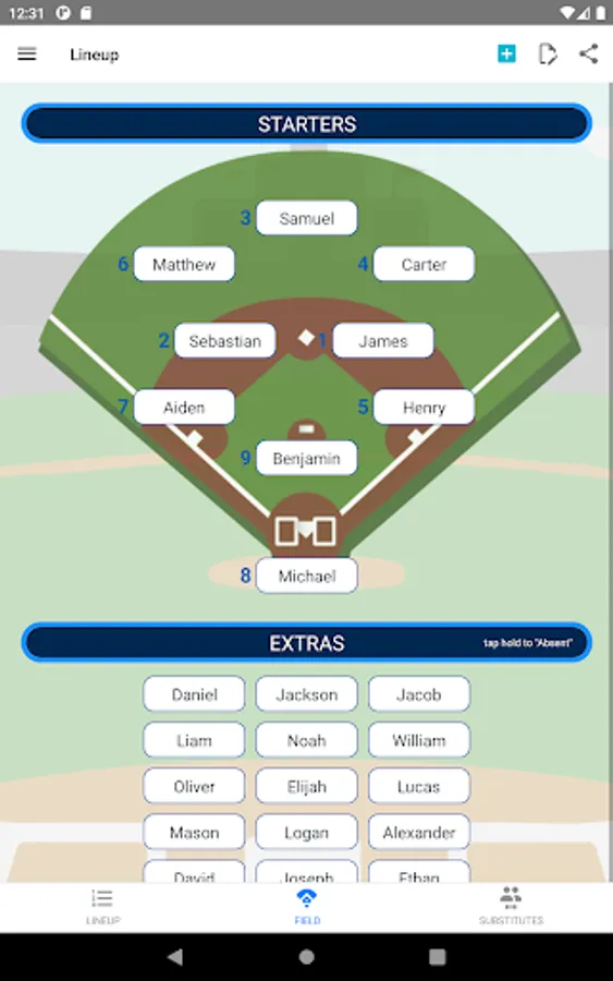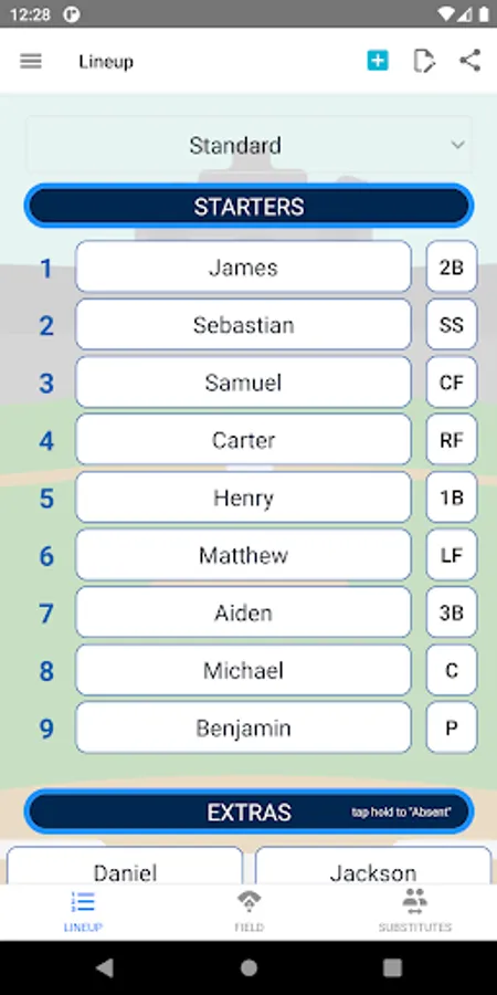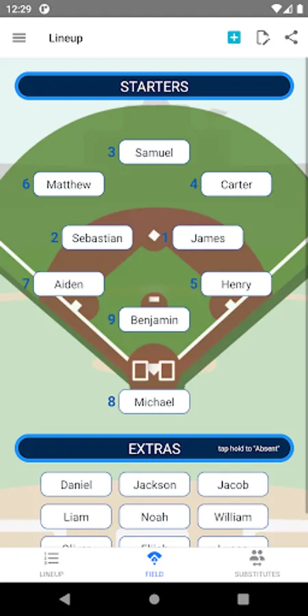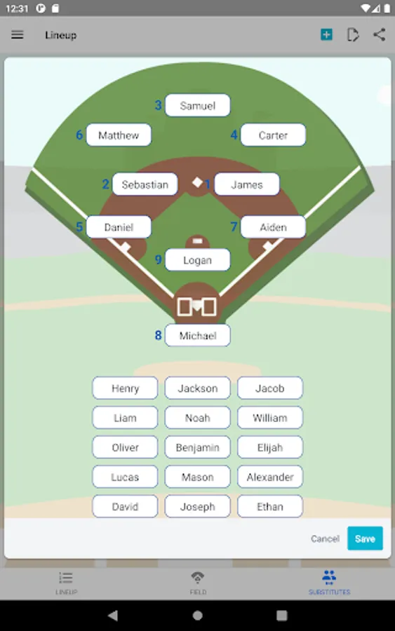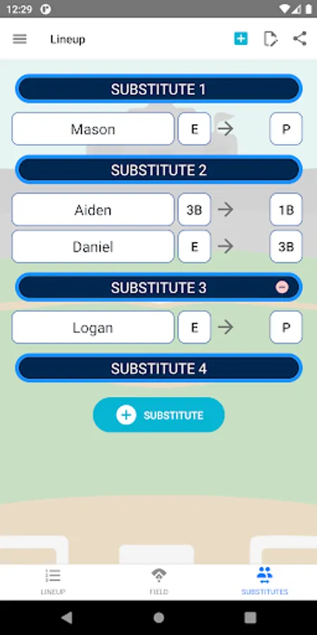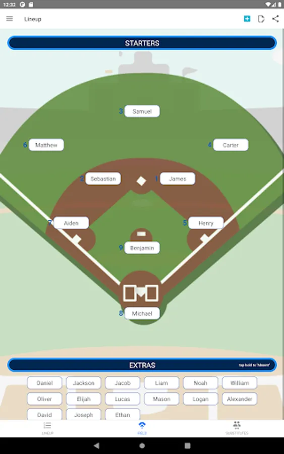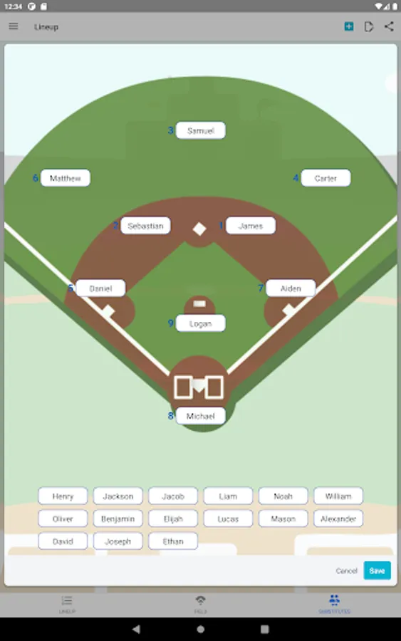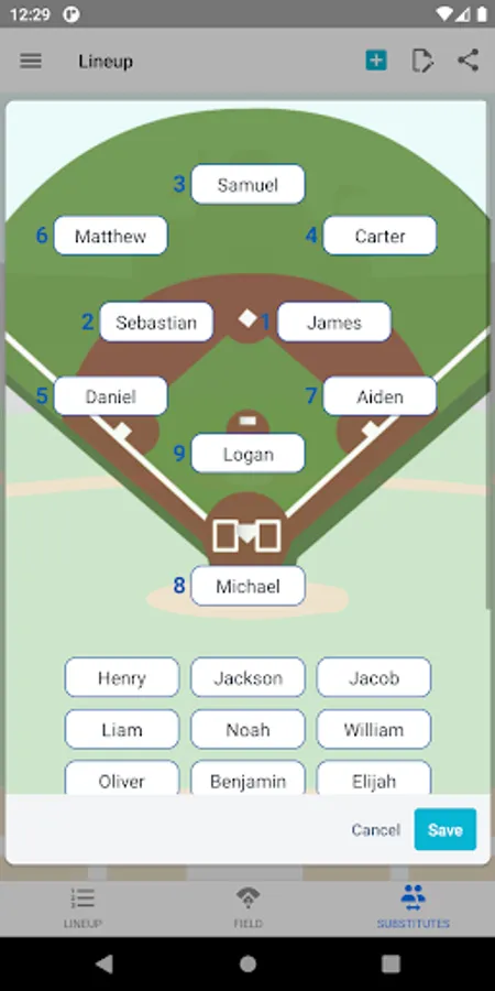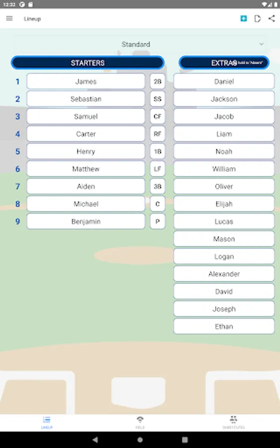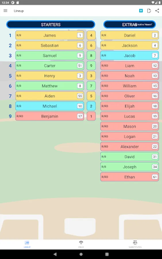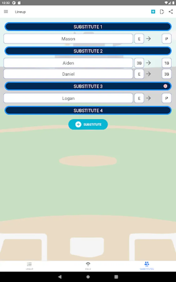 This app can easily change the batting order and position, also register for substitutes. It can be displayed in lineup cards format and field (diamond) format.