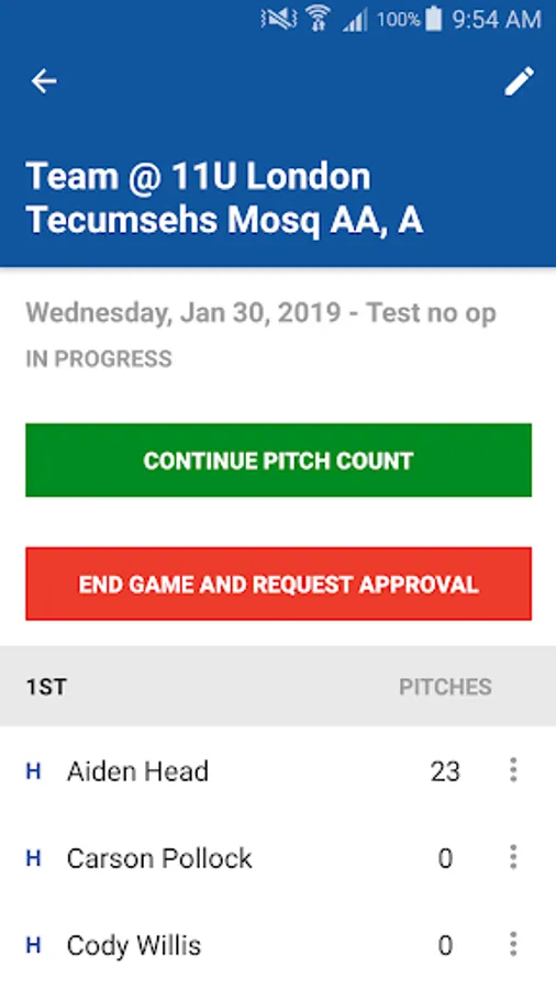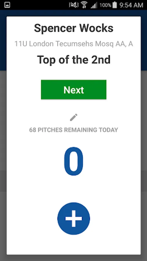 - Enter pitch counts after the game or add appearances from non-OBA games (high school, USA tournaments, etc).