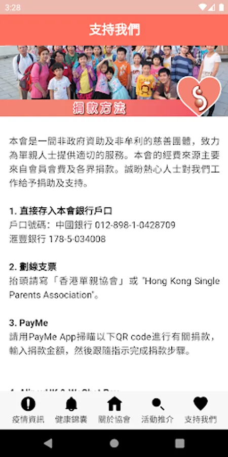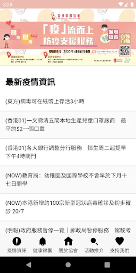 在現今多元資訊下,廣泛的媒體都以不同的角度關注疫情進展,每分每秒都有資訊更新。本會獲得「太古集團慈善信託基金」贊助,透過應用程式為大家整理坊間的防疫資訊,防疫物資派發活動。務求與大家一起「疫流而上」,無懼疫情。