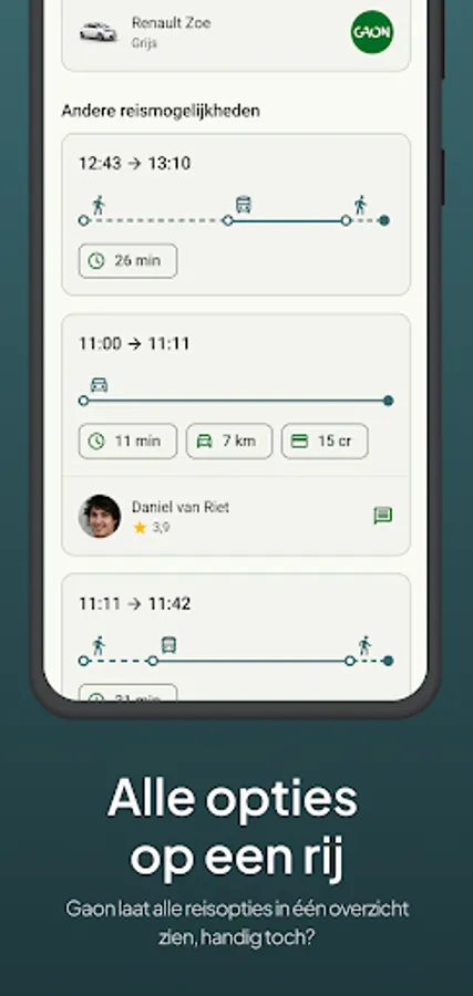 Gaon is working on a solution to the mobility problem in the Achterhoek. Thanks to the combination of different transport options, Gaon makes traveling in the Achterhoek faster, more social, more environmentally friendly and cheaper. Simply ride with roommates or offer a ride that helps others and earns attractive rewards.