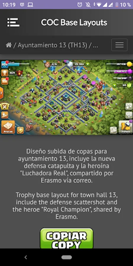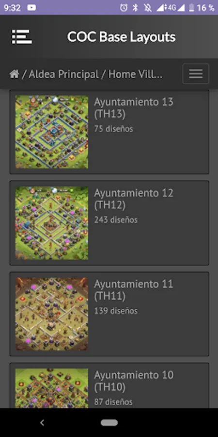 In this application you will found maps, base layouts for Clash of clans, farming war, also artistic designs o fan art.