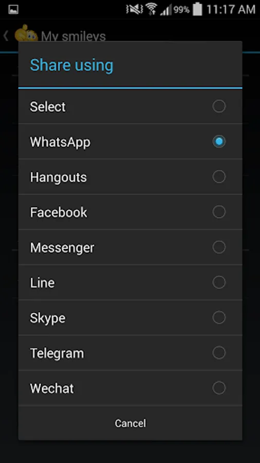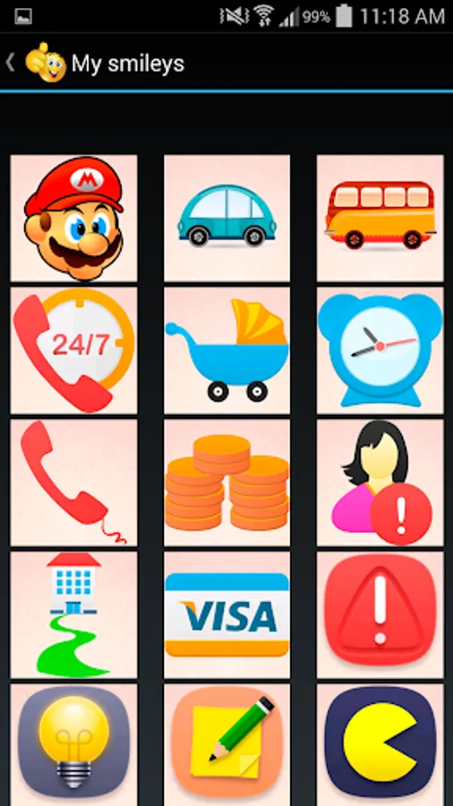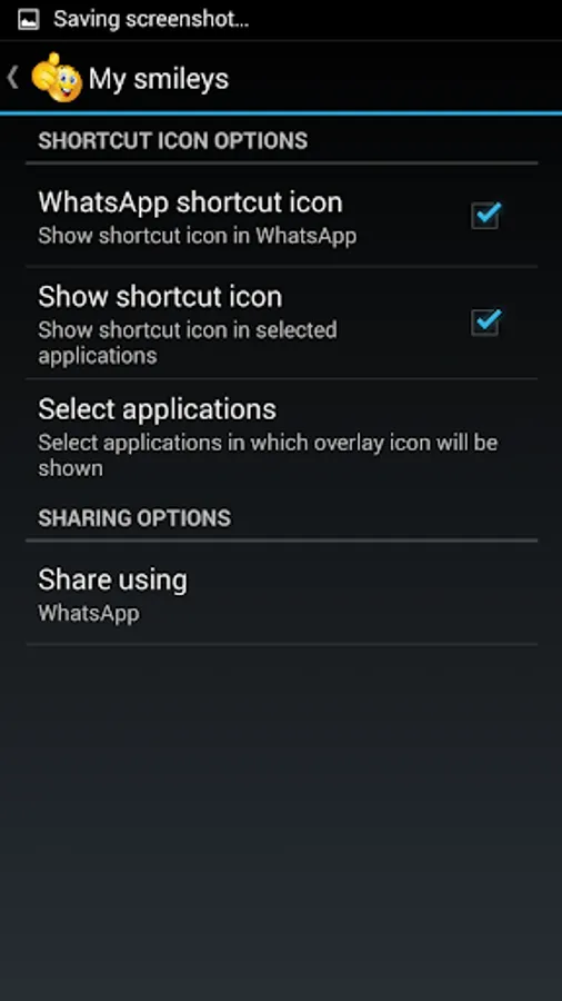 With My Smileys you can send Smileys spectacular design your contacts easily. Shortcut icon that will be available in messaging apps you can chose from the settings.